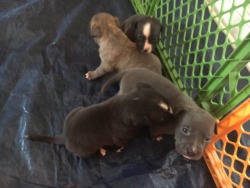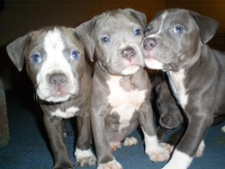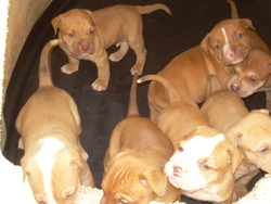 Blue Nose pups born Sept. 4, 2009. Mother is Razors edge bloodline. Parents raised around children. Pups have 1st shots, kennel cough vaccine, & dewormed. Will not sell to animal fighter. Puppies are eating puppy food & water. We have a few that look like the Pit from the Little Rascals original show. They are ready for good loving homes. Asking $500.