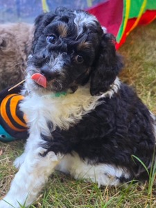 aussiedoodles raised with love and care. healthy, wormed, every 2 weeks, vaccinated 2 times before leaving our home...health checked by licensed vet. dew claws removed and tails docked. many color variations to choose from..25-40 pounds as adults