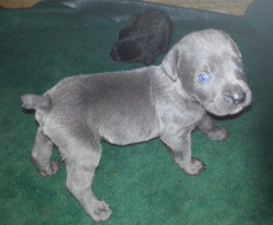 Litter born 07/06/2011. 4 boys and 5 girls. Both parents are blue, pure bred, ICCF registered Cane Corsos and are products of champion bloodlines and renown breeders. They have excellent dispositions and sound temperaments. The father, Brutus is out of Acropolis Kennel. He has outstanding confirmation, huge bone structure and a tremendous amount of working drive. Kayla, the mother is exceptionally gentle with children. She balances being a loveable family dog and an attentive guard dog with ease. Her father is Rivale's Mojo. For further information on both Kayla and Brutus and photos of prior produced puppies please contact us.