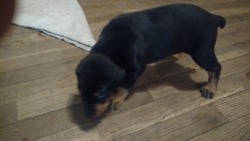 AKC 10 week old black tan female Doberman pup. 2 available.Ears cropped by DVM B.Arneson 26 years experience tails dew claws done. Mom is a Euro-red from Kimbertal Kennels, Pa. Dad is black american standard. Pups favor Dad.Need good home very smart girl, with Breeding Rights included. Open to offers.