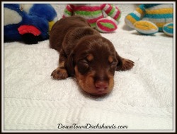 Email Down Town Dachshunds Our puppies are super lovable and will be very well socialized with kids and other dogs. Mom & Dad are on the premises and have great temperaments. All Puppies will come with current shot record, dewormed, a health certif. and vet checked. Plus a really nice puppy kit to get you started with your new puppy. Our puppies are raised as part of our family :-)