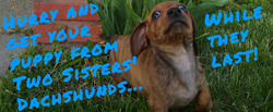 Email Two Sisters' Dachshunds Home-raised, purebred Miniature Dachshund puppies in Nebraska. New AKC litter available in February 2025.
