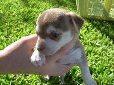 Email jessy parkerpup THis is an adorable chihuahua baby. He is a male, born on Sept 5. He will be ready to go on Oct. 31. We call him "Thomas". He is the smallest Male. He is blond with a little white mask and the most beautiful pale blue eyes. I own both of the parents. This is my last litter and all the pups have been very healthy and active. He weighs approx 1.5 lbs now and will grow to weigh approx 6 lbs. He will get his first round of shots and deworming on Oct 25th. He is starting pad training. He is very cute, a little shy but loves to play with this brother and sisters. You are welcome to come visit him. He is registered with the ACA and I have his papers.