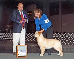 Email ICEWIND ACCEPTING DEPOSITS FOR OUR WAITING LIST!!! AKC BREEDER OF H.E.A.R.T. Sire of our puppies Zane - Beautiful Russian Champion who is a perfect example of what an English Golden should look like!!! Zane has a huge blocky head, beautiful white coat, with stunny black pigment, large boned and has the most easy going, gentle temperament. Our Goldens have ALL HEALTH Clearances for OFA hips, elbows, eyes, heart, shoulder osteochondrosis, thyroid, dentition, patellar Luxation and Verification of Permanent Identification. Plus more extensive DNA Genetic testing is done. Each of our Goldens have certificates for ICT (Ichthyosis), prcd, PRA_1, PRA_2, COL7A1, GRMD, COL1A1, SAN-tRNA and SOD1. Plus 160 more DNA Clearances. Please contact us for a complete list. NONE of our puppies will be affected with ICT (Ichthyosis) a bad skin disease. We searched for many years to find Champion Goldens who come from Healthy Lines. Most of our dogs are imported from Russia, known for having the best English Goldens in the world. All our puppies receive ENS (Early Neurological Stimulation) first recognized by the US Military (also known as the Bio-Sensor Program) to breed a more healthy and superior dog. Each puppy will have a Veterinarian Health Certificate, vaccinations, and several wormings done. Our puppies are well socialized in our home with our children, grandchildren, family, friends and other pets. Our puppies are happy, friendly, sweet, outgoing and make the Ultimate family pet. We offer a lifetime health guarantee in return for a lifetime commitment from you. Icewind strives for excellence and we will be there for you throughout the life of your new family member. All of our Goldens receive NuVet Supplements. NuVet Plus builds a strong immune system. NuJoint Plus is vet recommended for dogs who are prone to bone problems. NuJoint lubricates joints and rebuilds cartilage. The combination of both supplements were designed for your pet to live a long and healthy life. No dry kibble dog food will provide all the daily nutrition your pet needs after being rendered at over 200 degrees. For more information on Nuvet supplements call 1-800-474-7044 breeders code 67838 or visit www.nuvet.com/67838 . We welcome visitors with a confirmed appointment. You may not be looking for a show dog but when it comes to your puppy's health and temperament, a Pedigree and health clearances will make all the difference. If you would like to see some of our past puppies in their new homes visit our website testimonial page. For more information or to make an appointment to visit please email. Full AKC Registration Available - email for price. Next litter ready for Christmas - Accepting Deposits Now!!!julius