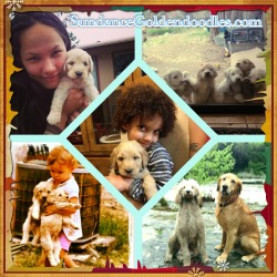 We raise Goldendoodles, Standard Poodles and Golden Retrievers! They are raised in home and are socialized with children, dogs, cats and even my ducks lol We handle puppies from day one... I also take TONS of photos and videos and send them to the lovely people that will be spending forever with them :) We include puppy binders that will have their info (shots, birth info, calendars that will have when they opened their eyes, their first baths, etc) it will also have breed info, etc. We will include puppy kits (crate, bed, blanket, toy, food/water bowl, food, treats, leash, collar, brush, comb)
