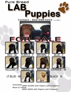 Email Gochee Labs Yellow, Chocolate and Black American Labrador Retriever puppies.