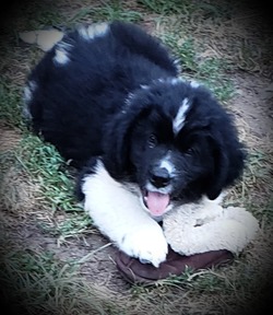 We have chosen these two very compatible breeds because when crossed, they create a large, versatile, family friendly dog without the droopy jowls and eyes that often come with the Newfoundland, and without the cancer risk that tends to plague purebred Bernese Mountain Dogs. We have naturally chosen to breed only the healthiest of these two breeds so that our puppies can be expected to have a long and productive life with your family and ours.