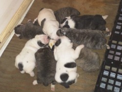 Email James Olde English Bulldogge Puppies born 3/26/16. $750 for Pup. $125 down pick up at 8 weeks old. Tails cropped and dew claws removed. 1st round shots given. Several brindle available. Call or IM at 281-900-2499.