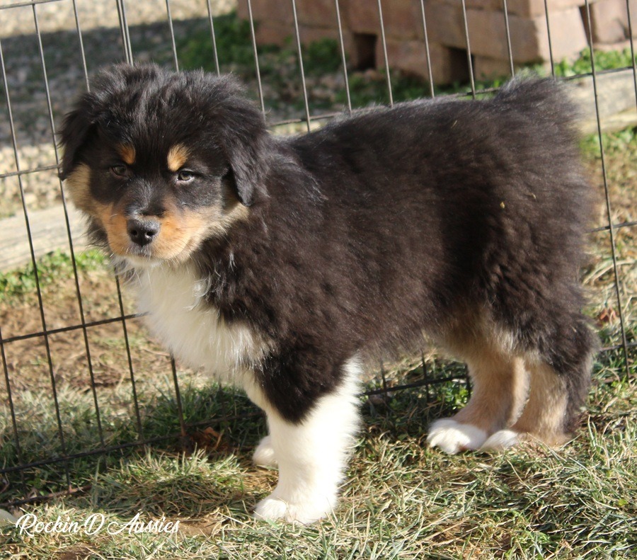 AKC & ASCA black Tri male Australian Shepherd puppy. He is a very friendly, outgoing and playful puppy. Loves people! Parents are health tested. Champion bloodlines. Vet checked current on shots and d...