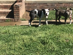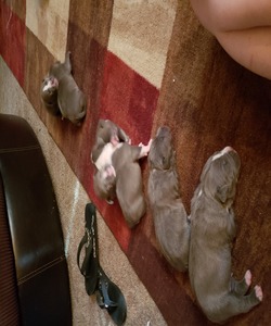 Email Sandoval Full blooded blue nose pitbull puppies arrived they are now 8 days old. We own both Dad and Mom. Parents are grey with white markings with colored eyes. Parents are a great temperament. We have had Dad for 4 years and Mom for 2 years. Their puppies will be an amazing addition to your family. The pictures of Dad and Mom are posted as well so you can get an idea on appearance as they grow. The dad is 95lbs solid muscle with a big head the mom is 85 lbs of muscle and has the prettiest female face. Puppy pictures are posted now as well. Puppies will have shots and be dewormed. 2 Females and 1 male are now available. We will accept a deposit to hold puppies due to the amount of interest we have recieved. These puppies are only to go to a loving home and are not FREE!! Pupppies will be available to go to their new homes by the end of June early July. If you are interested contact me for specific information. These puppies can come with or without papers. These type of dogs are a hard to come by and are not cheap. Serious inquiries only please!!! contact 8zero4385nine6three4 or contact me by email.