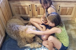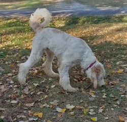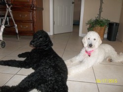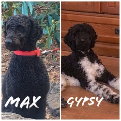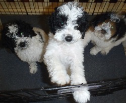 Pyredoodle - cross between a Standard Poodle and a Great Pyrenees. Very loving dogs, Crate trained, potty trained, walks on leash.
