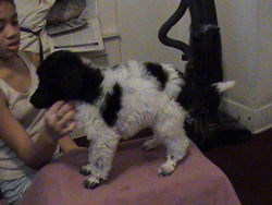 Pyredoodle - cross between a Standard Poodle and a Great Pyrenees. Very loving dogs, Crate trained, potty trained, walks on leash.