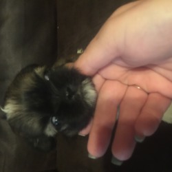 Full Blooded Tea Cup Shih Tzu DOB 6-9-17, Tiny Black With White Tips, MALE very RARE, 1st shots,wormed,registered,pee pad trained,eating solid food,VERY TINY! Very playful,very socialized, HAND RAISED NOT IN A CAGE, Mom & Dad on site.