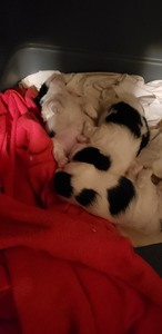 We are a small hobby breeder who hand raise our puppies with tender loving care. The Dane(Mother) is always on site for you to meet and we welcome anyone to come see our puppies and play with them. We have another dog to help socialize the puppies and a nice big backyard for them to romp around in when they are big enough to go outside!